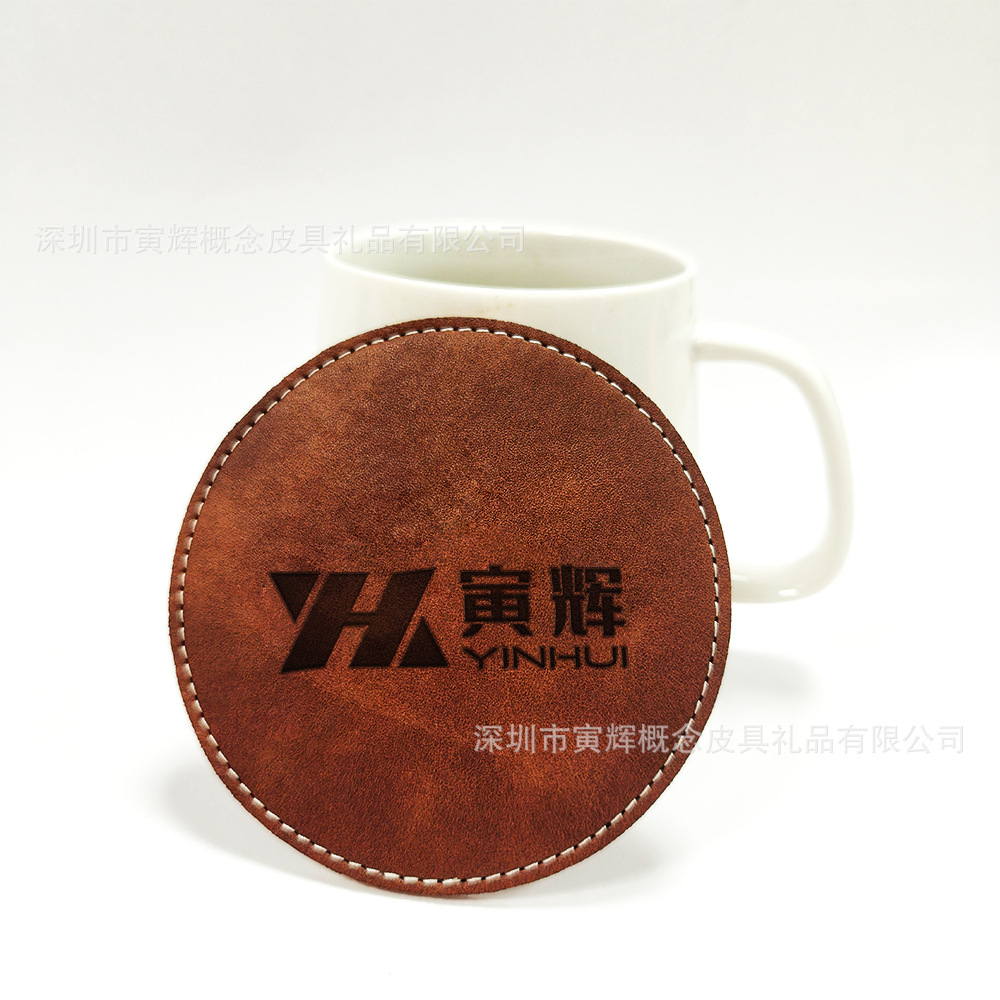 ホット販売カスタムラウンドレザーティーコースター pu 断熱パッド二層レザーコースター卸売プロモーションギフトセット