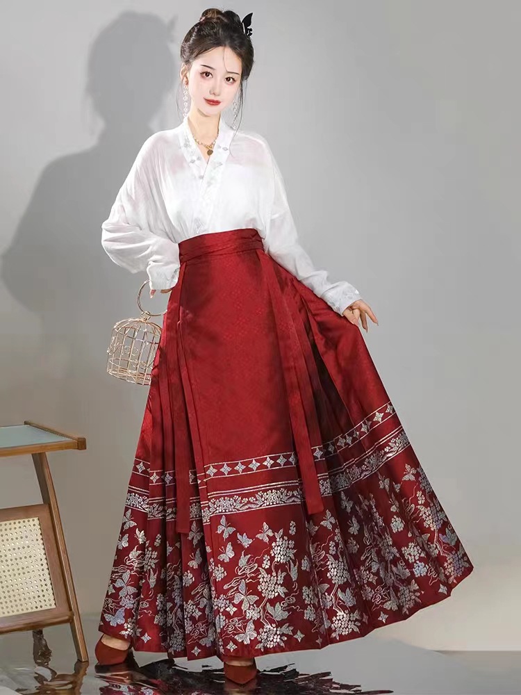 秋の新型の明るい馬のスカートの薄いタイプの夢蝶の漢服のスーツの国風の学生の日常のタイプは金の螺を編んで通勤します。