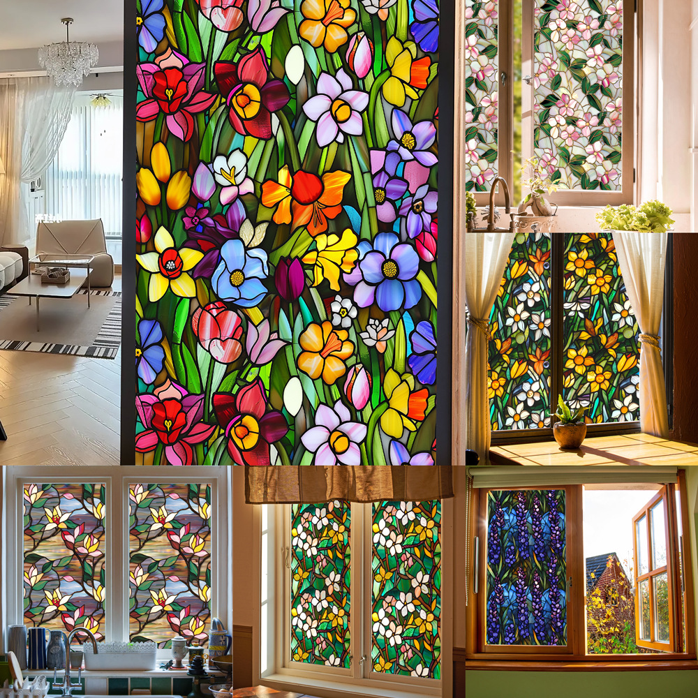 SMBL347-366 両面カラーフラワー静電ガラスステッカー PVC 取り外し可能なウィンドウフィルムガラスウィンドウステッカー