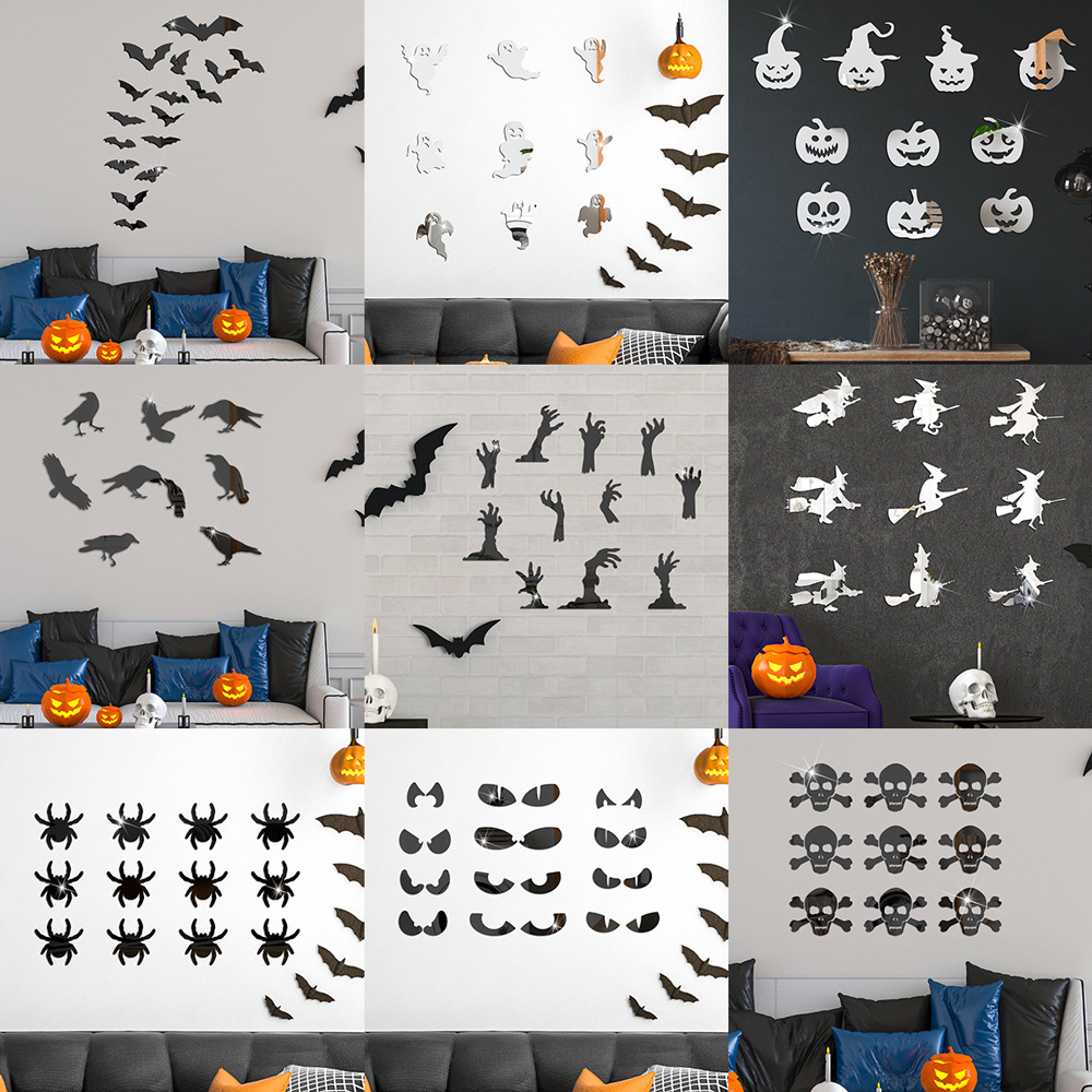 ハロウィーンコウモリ魔女幽霊カラス蜘蛛の巣バイターアクリル鏡貼り立体自己接着祝日壁貼り