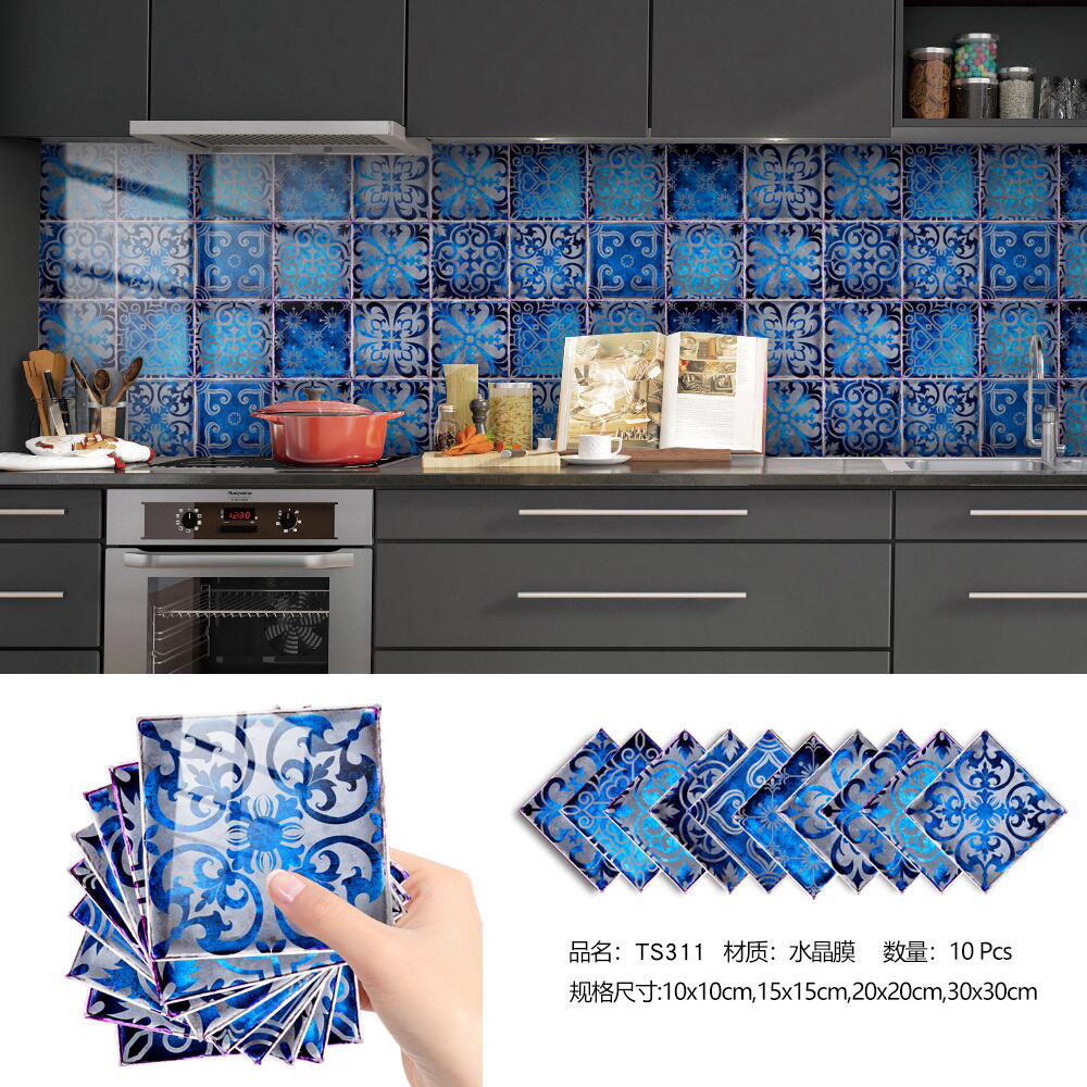 Ts311国境を越えたレトロなカラーの青い花のれんがの模様の磁器のれんがは家の装飾のdiyの自己接着の水晶の膜の壁を貼って貼ります。