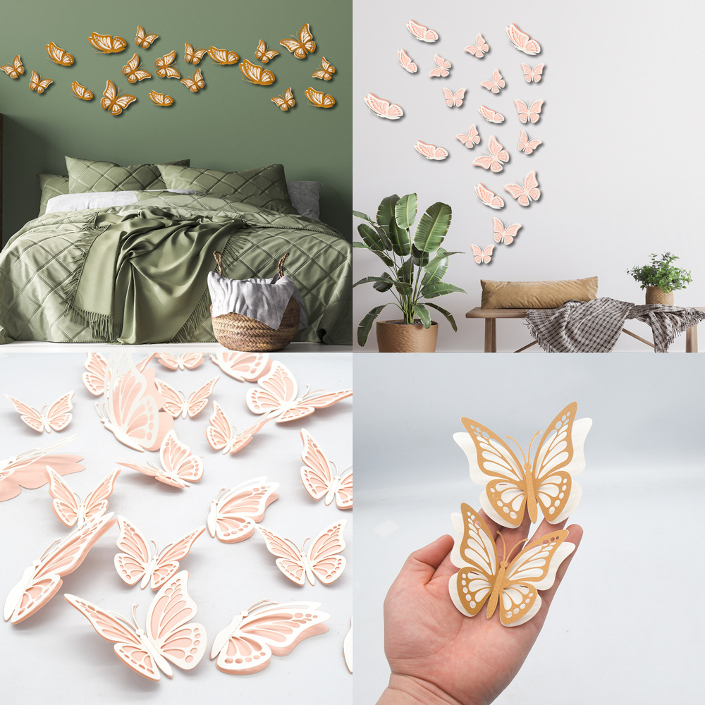 Hb 39立体二重カラーパール紙透かし彫り模擬蝶結婚祝い祝日家庭装飾diy壁貼り