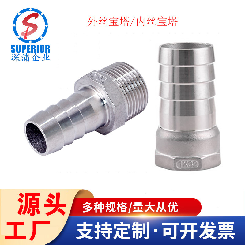 304ステンレス宝塔継手六角外糸皮管ホース継手24分6分1インチ変径皮管