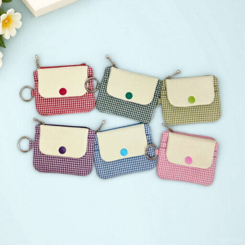 マカロンカラーチェック柄封筒型ジッパーカードホルダーポータブルバッグ小銭入れヘッドフォンバッグおばさんタオル収納袋