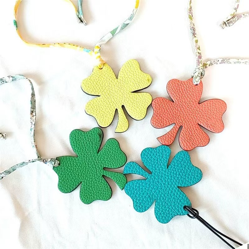 メーカーの売れ筋絶妙な花の四つ葉のクローバー小さなペンダントキーホルダーカラーレザーパーソナライズされたギフトペンダントキーホルダー