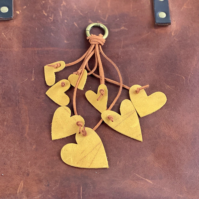 売れ筋の見栄えの良いフェアリースタイルの積み重ねハート型レザータッセルバッグペンダントかわいいキーホルダーペンダントポータブル小物