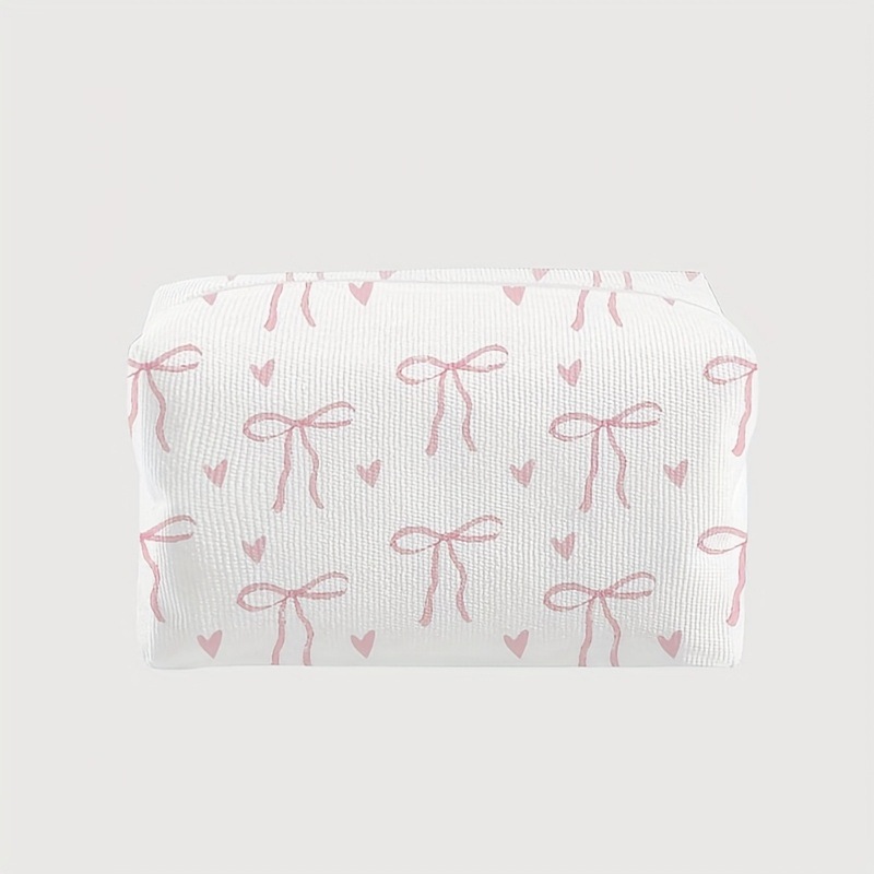 泡泡棉蝴蝶结印花化妆包 可爱大容量碎花洗漱包 便携护肤品收纳包