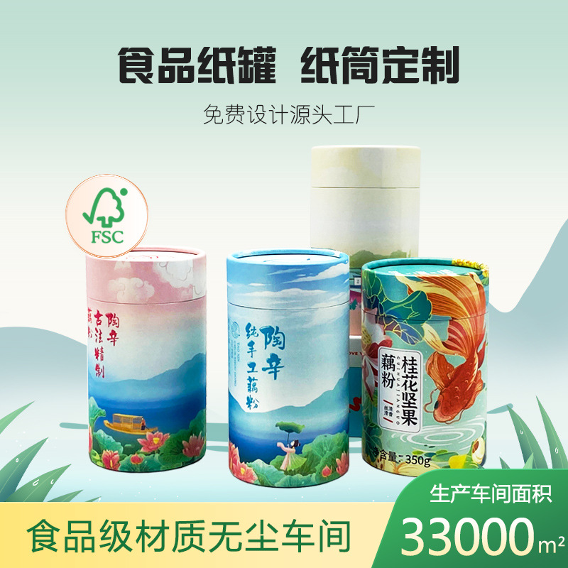 ヨーロッパ標準輸出丸缶FSC醸造ミールリプレイスメントパウダー、レンコンパウダー紙缶、カスタムギフトティー紙筒包装缶、カスタムメイド