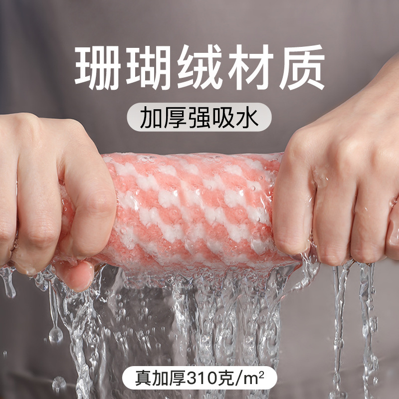 キッチン厚手の強力な吸収性雑巾、エッジストライプ、家庭用クリーニングコーラルベルベット食器洗い布、ノンスティックオイルたわし