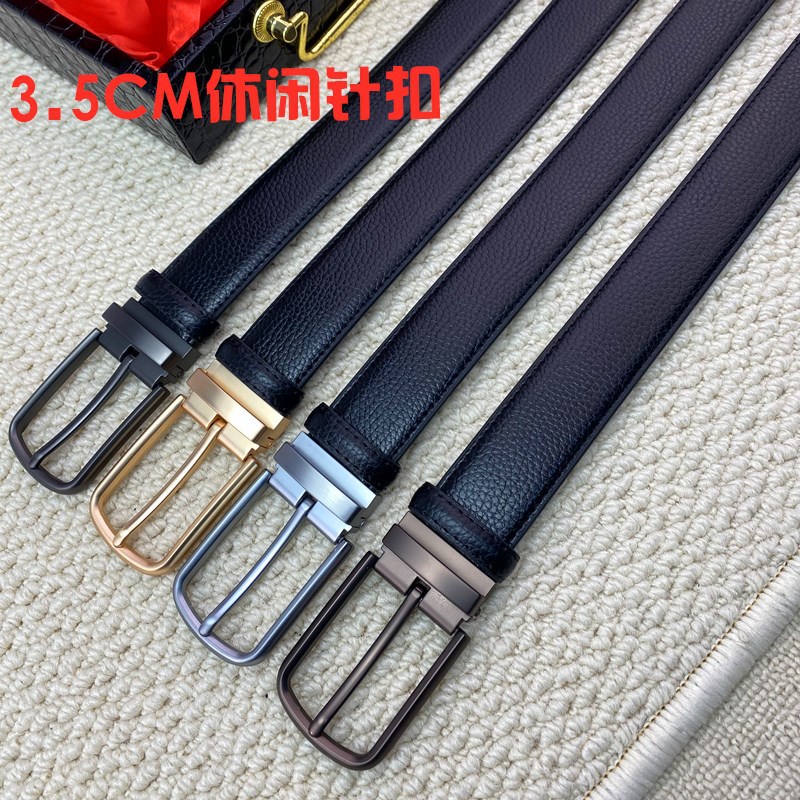 メンズビジネスシンプル針バックルトップ層牛革ベルト黒カレー2面用ベルト3.5cmカジュアルパンツバンド卸売