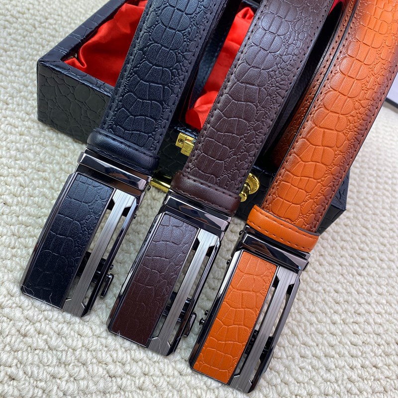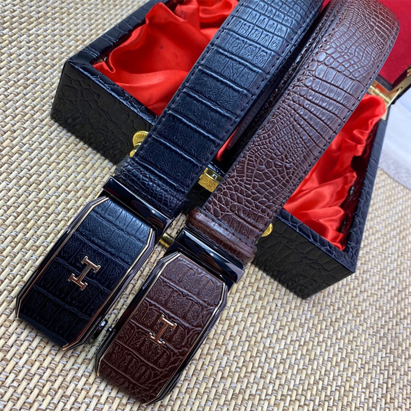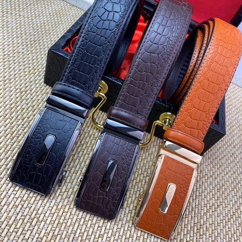 ワニ紋男性本革牛革ベルトビジネス男性式自動バックルベルト