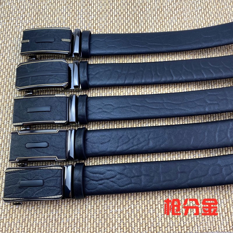 男性用バックルなしベルト3.5cm幅自動バックルベルトボディトップ層牛革花皮ベルトスポットメーカー卸売り