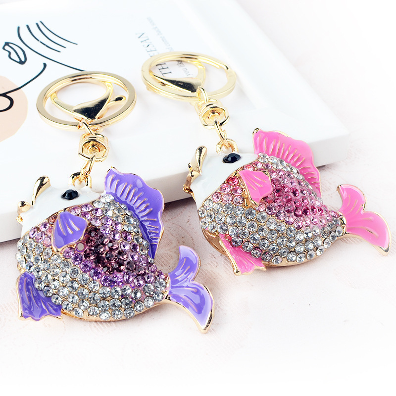 クリエイティブな金魚のキーホルダーには、小さな太った魚の金属製の自動車ストラップの女の子のバッグが飾られたクリエイティブなプレゼントが入っています