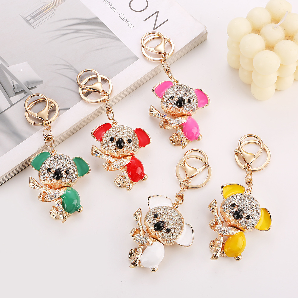 コアラの熊の車のキーホルダーを入れて、女性のカバンを掛けます。