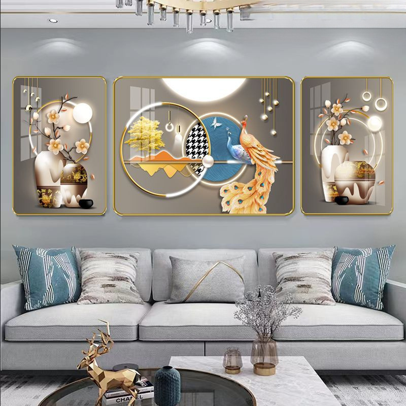 新しい中国式の簡単なソファーの背景の壁は軽くて豪華な大気の角の3連の山水の壁を掛けて客間の装飾画を描きます。