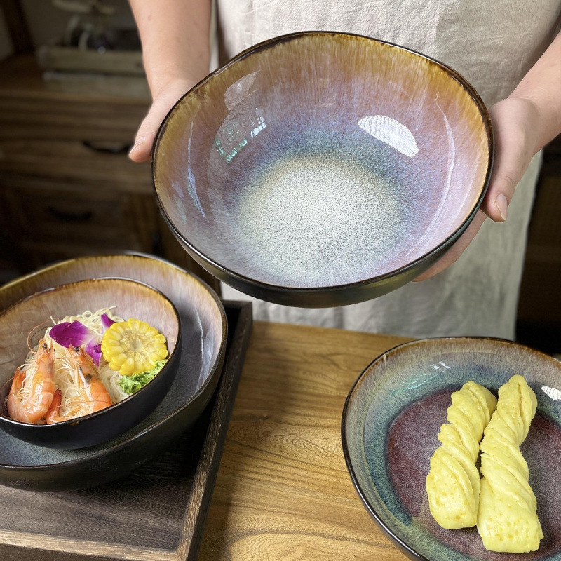 雲夢異型碗皿レトロ食器窯変ステーキ皿大湯碗茶碗皿毛血旺盆