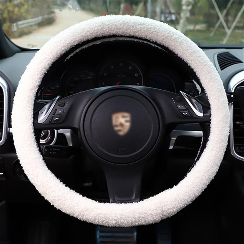ラムウール車のステアリングホイールカバークリエイティブ刺繍ぬいぐるみ車のハンドルカバー秋と冬暖かい車のハンドルカバー