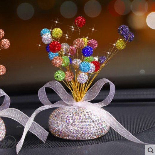 車のインテリアのダイヤモンドがちりばめられた装飾品、センターコンソール、かわいくてクリエイティブなインターネット有名人のカーフラワーオーナメント