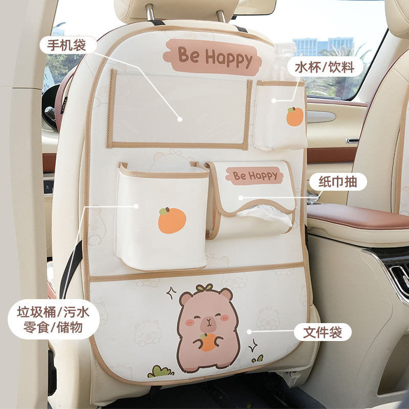 Kapibala 車の収納袋革の汚れ防止と耐摩耗性車の収納ボックス漫画のカワウソ車のゴミ箱