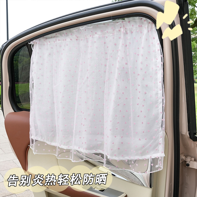 レースダブルハートカーカーテン伸縮式車載シェードサイドカーテン日焼け止め断熱車用シェード