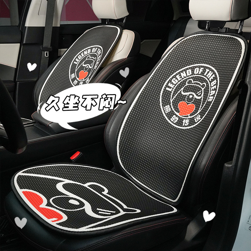 漫画クマ Qiu カーシートクッション夏クール通気性アイスシルクハニカムカーシートクッション通気性快適なソフトカーシートクッション