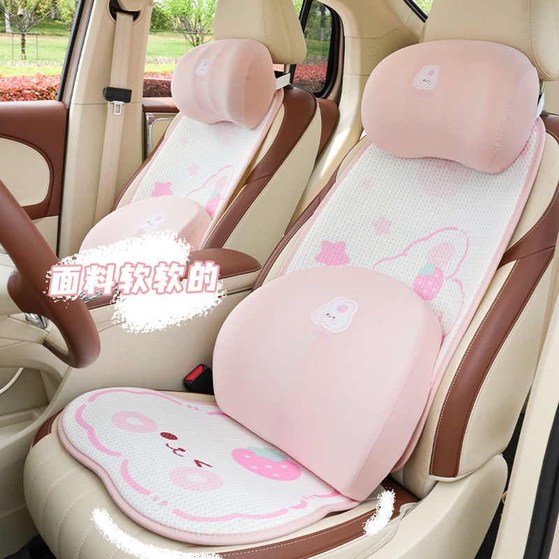 記憶綿の車のヘッドレストの腰はイチゴのウサギの快適な車の腰のクッションで腰の四季通用の車の背もたれを保護します。