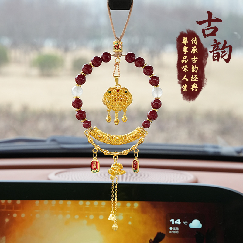 古風自動車ストラップ国風軽豪華朱砂車載バックミラー掛け装飾古韻平安喜楽車用ストラップ