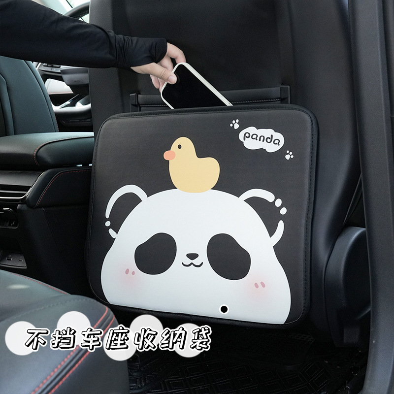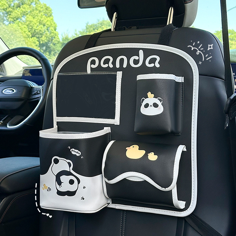 かわいいパンダ車の椅子背もたれ収納袋革汚れ防止と耐摩耗性多機能吊り下げ車のゴミ箱ティッシュボックス
