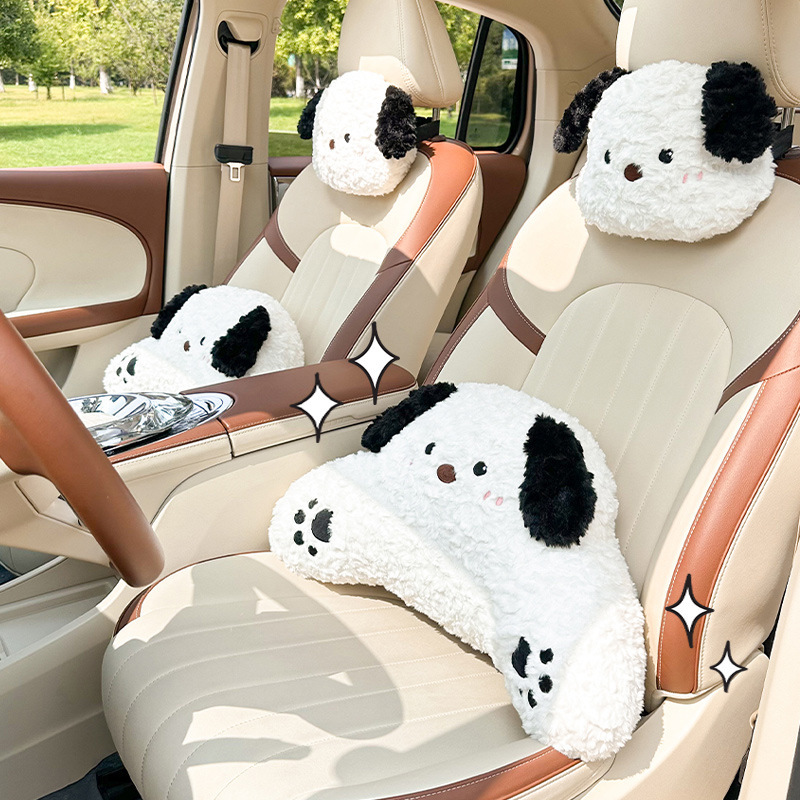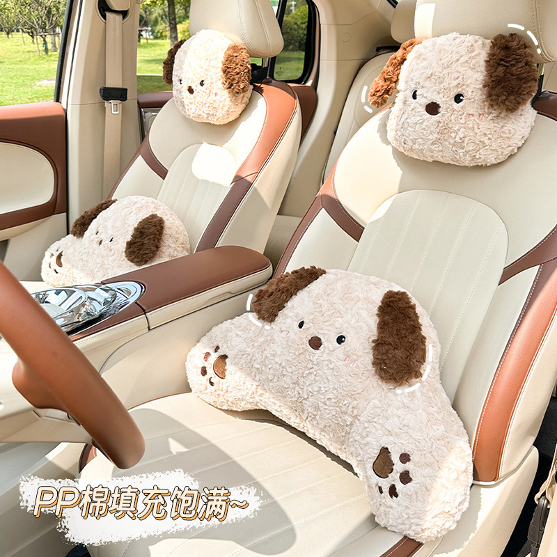 ぬいぐるみの子犬の車のヘッドレストの腰枕のアニメのぬいぐるみの快適な車のシートの背もたれの枕の首の枕のかわいい車の車の抱き枕