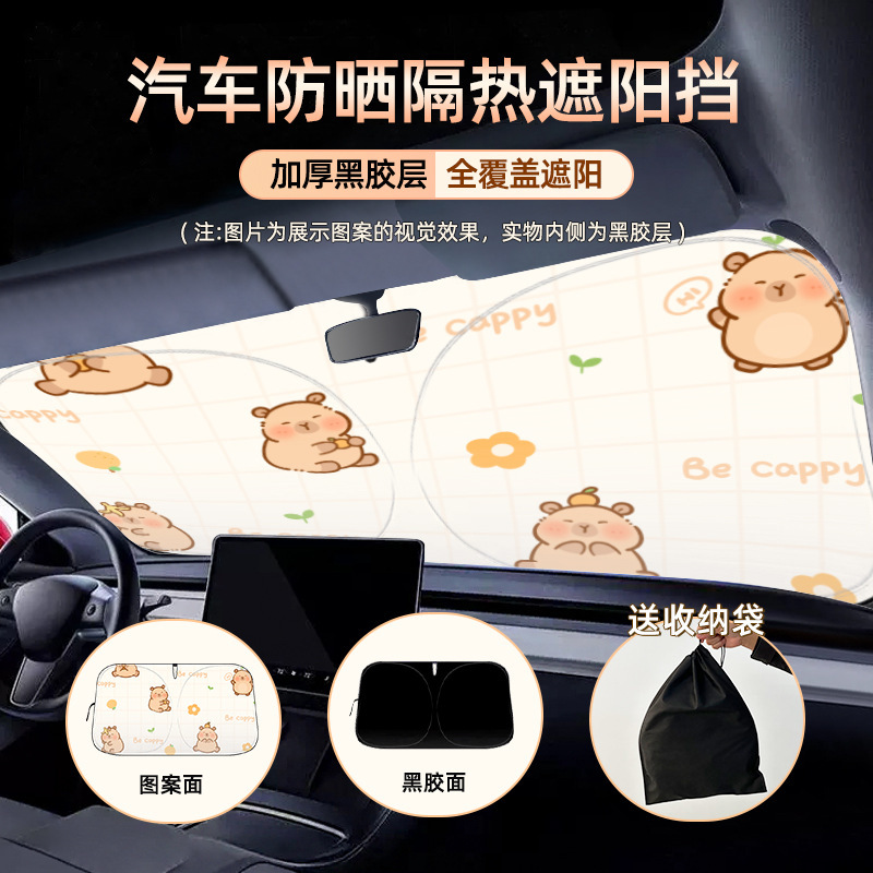 車の二重リング日よけカピバラ車のサンシェードキャラコ日焼け止め断熱車日よけフロントギア