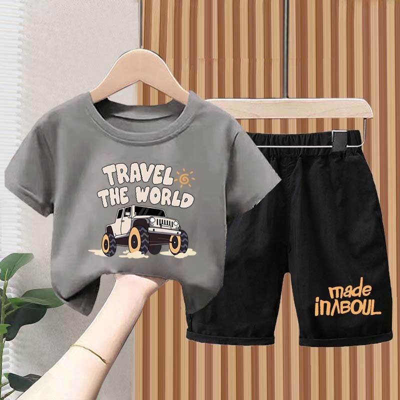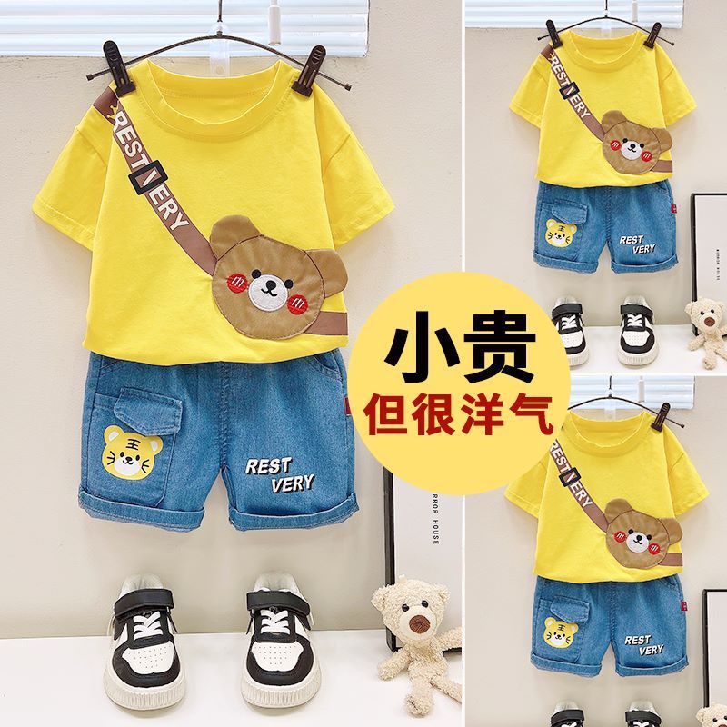 ボーイズスーツピュアコットン2023新作夏男の子ベビー半袖Tシャツ2点セットトレンドブランド外国風子供服
