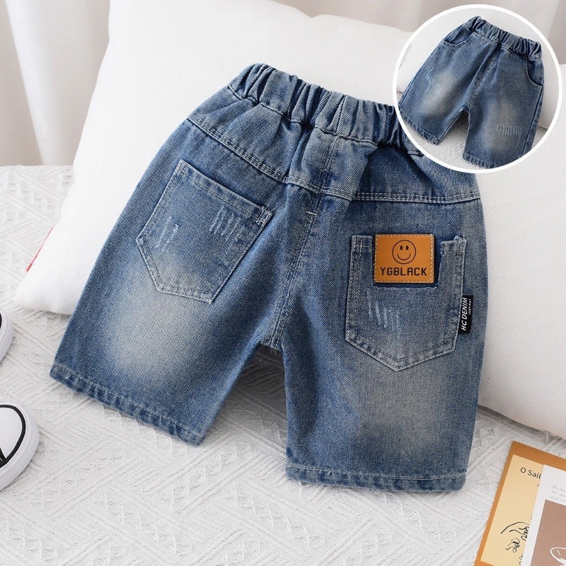2024子供用デニムショートパンツ新しい韓国スタイル子供用5点パンツカジュアルでスタイリッシュなミッドパンツ薄くて多用途な子供用