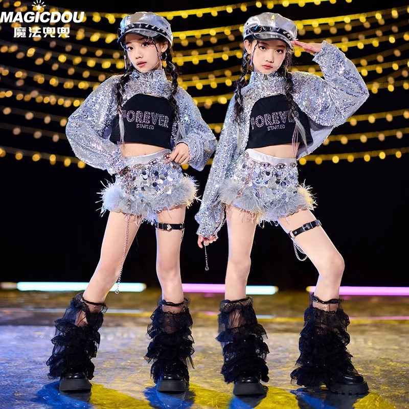 ジャズダンスガールズコスチューム、ガールズグループドラムパフォーマンスコスチューム、子供用ヒップホップファッションコスチューム、ヒップホップガールズキャットウォークパフォーマンスコスチューム