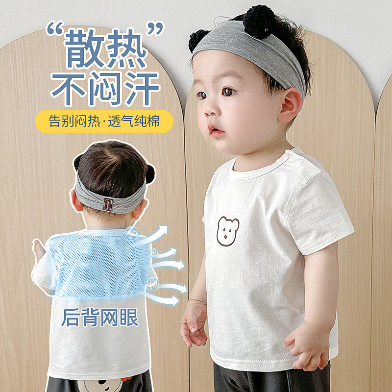 ベビー半袖 Tシャツ夏薄い幼児ベビー純綿メッシュ通気性トップス子供の超薄型服