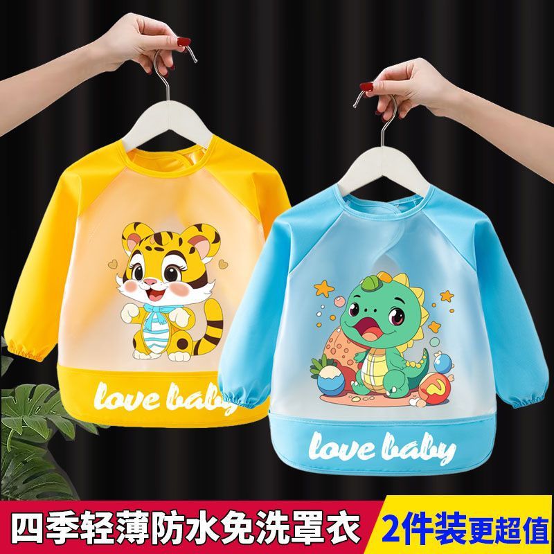 子供用スモック長袖防水アウター春秋薄手幼稚園エプロン1歳から3歳の男女ベビー食事よだれかけ