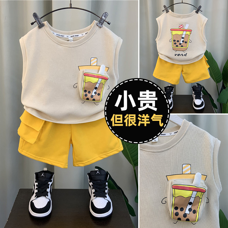 男の子夏のベストスーツ 2025 新しいスタイルベビー夏のスポーツ半袖服子供クールでハンサムな子供服