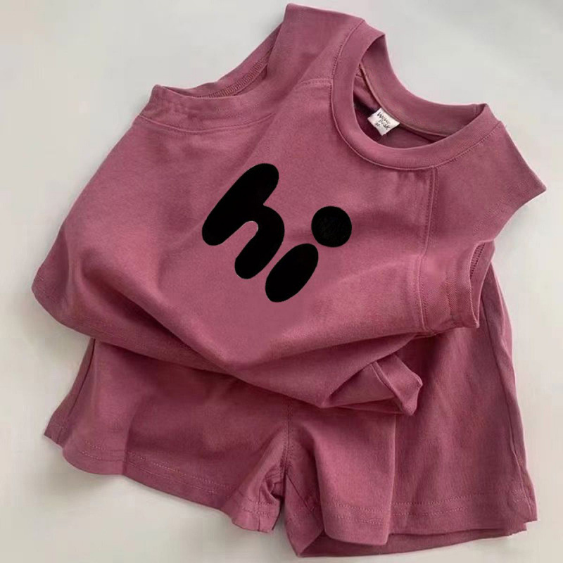 純綿子供のノースリーブベストスーツ 2025 夏男の子と女の子のベビースタイルカジュアルファッションルーズスポーツスーツ