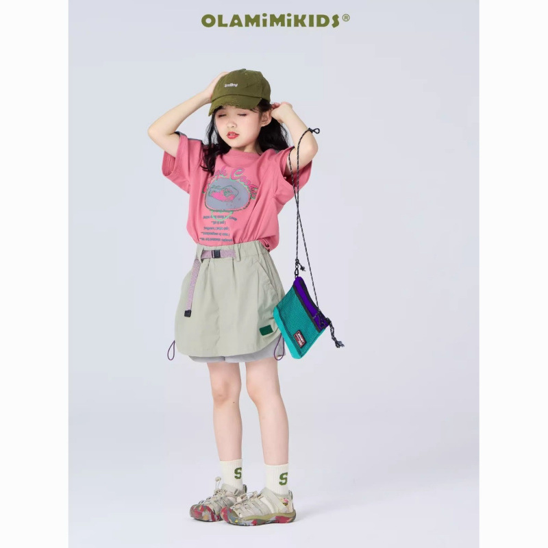 女の子スーツ 2024 夏の新スタイル中大型子供カジュアルカラーマッチングファッション半袖スポーツ偽ツーピースショーツ