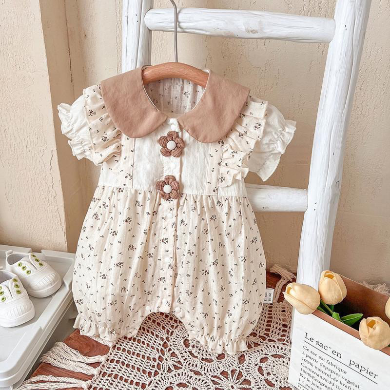 ベビー服の発送、夏用薄手純綿夏用ワンピース、ベビープリンセスジャンプスーツ、花柄半袖アウター