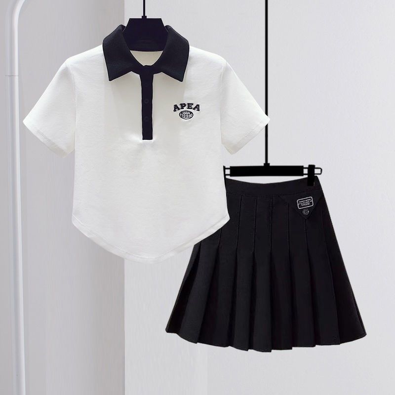 女の子のサマースーツポロシャツとスカートのツーピースセット夏中大子供用カレッジスタイル女の子プリーツスカート