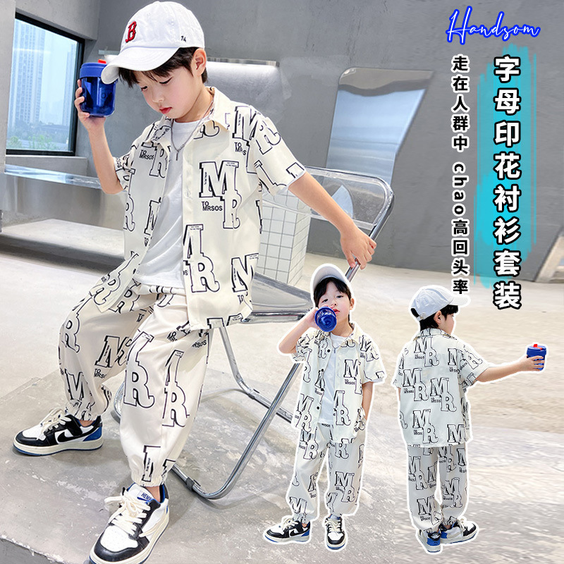 男の子の夏のスーツ 2023 新しいベビー夏半袖ズボン薄い 2 点セット子供シャツ休暇