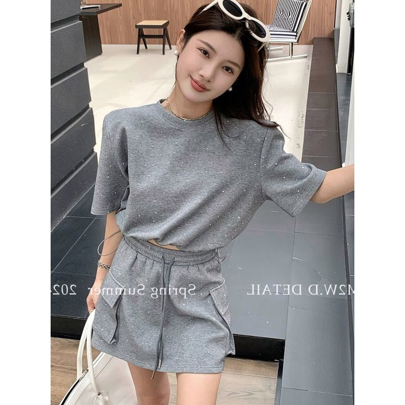 スターベビーブレスホットダイヤモンドスポーツスーツレディース夏新作ハイエンド半袖Tシャツカジュアルスカート2枚