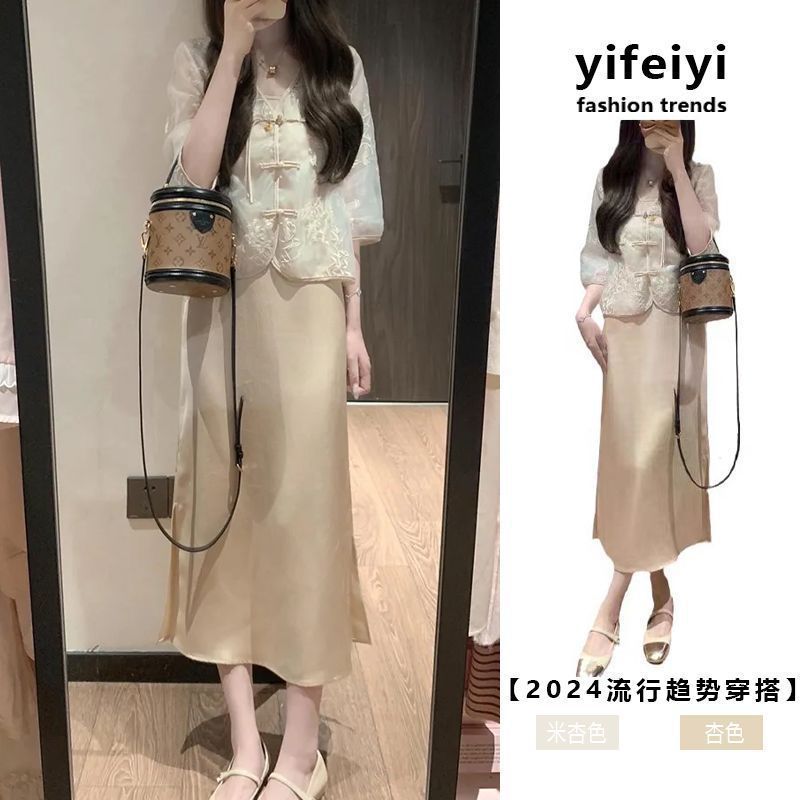 女性のためのファッショナブルな日焼け止めスーツスカートの新しい中国風のボタンカーディガンレトロサスペンダースカートハイエンドツーピース