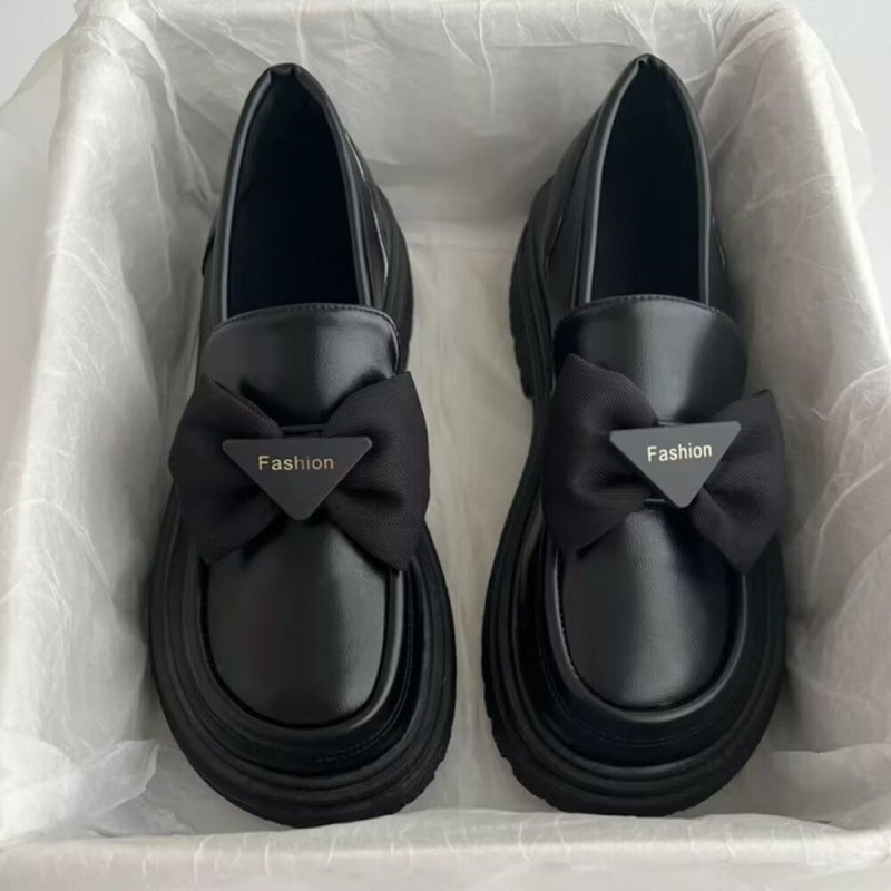34-42 日本製 JK スリッポン ボウ ローファー 秋新作 厚底 小さめ革靴 レディース
