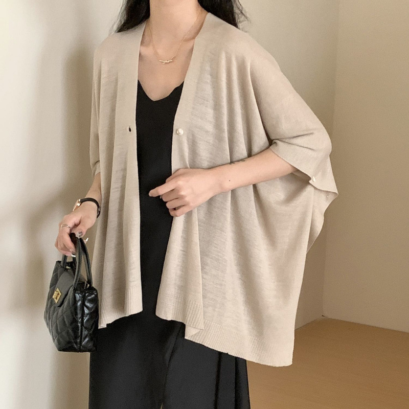 ドロップシッピング日焼け止めショール、エレガントでスタイリッシュなボタン付きルーズソリッドカラーの薄いマント、女性用エアコンニットカーディガン日焼け止め服
