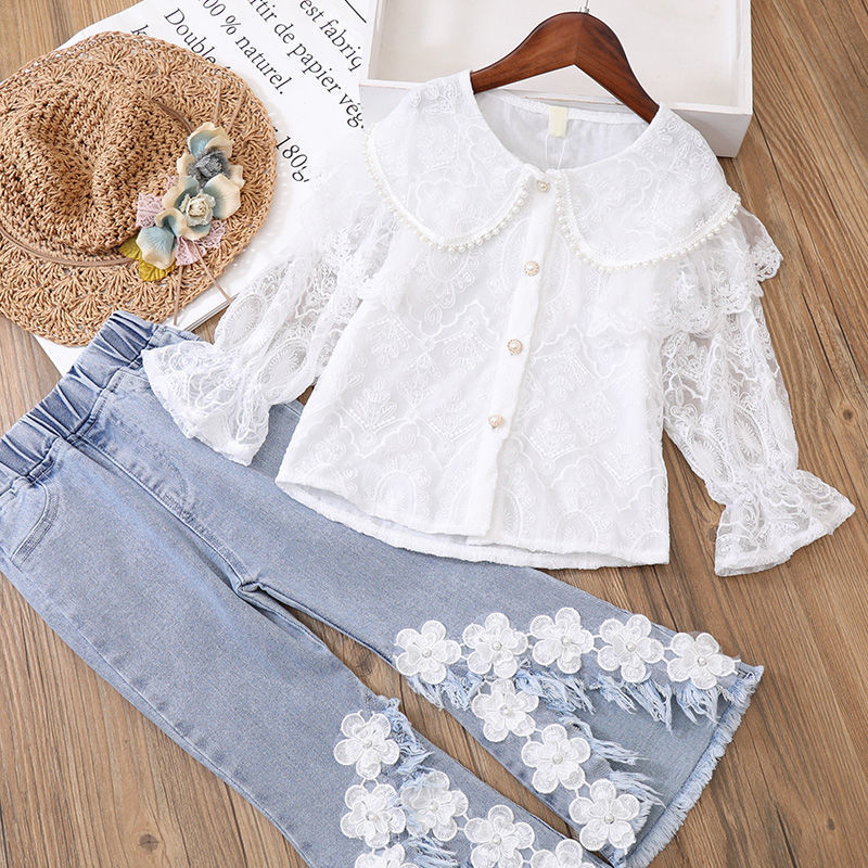 女の子用ベルボトムパンツ、春秋のおしゃれなデニム、韓国風ストレッチ9点、中型、スリムフィット、12歳