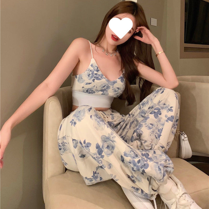 小柄な方向けの夏服と気質スーツの発送 2025年新作ネットセレブストリートホットガールセクシーワイドパンツ2枚