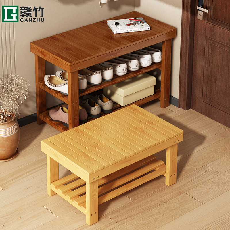 竹の靴の棚の家庭の入り口の実木は一体的に家に入って靴の腰掛けを交換します。