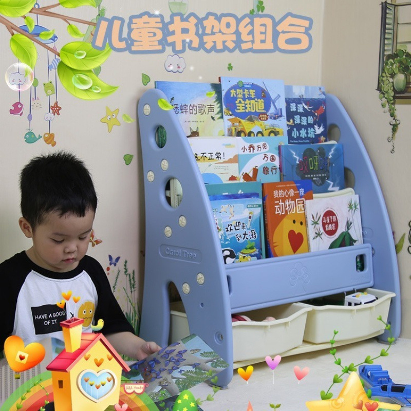 子供用プラスチック本棚、家庭用赤ちゃん絵本棚、子供用本棚収納バスケット、シンプルな床置き収納ラック、工場卸売