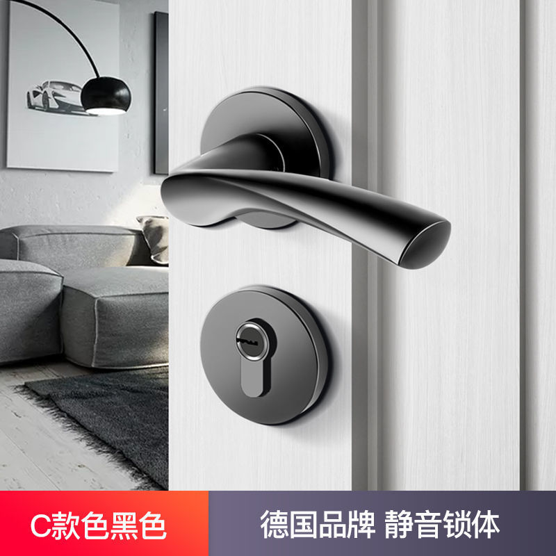 室内静音木ドアロック黒寝室トイレ実木房ドアノブ汎用型ロック